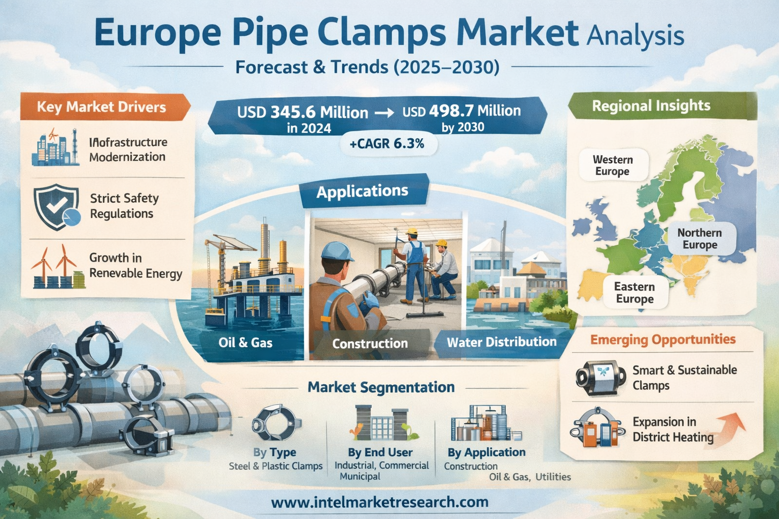 According to a new report from Intel Market Research, the Europe Pipe Clamps Market was valued at USD 345.6 million in 2024 and is projected to reach USD 498.7 million by 2030, growing at a robust CAGR of 6.3% during the forecast period (2025–2030). This growth is propelled by robust infrastructure development across the continent, stringent safety and quality standards, and the ongoing modernization of industrial facilities throughout Europe's diverse economies.