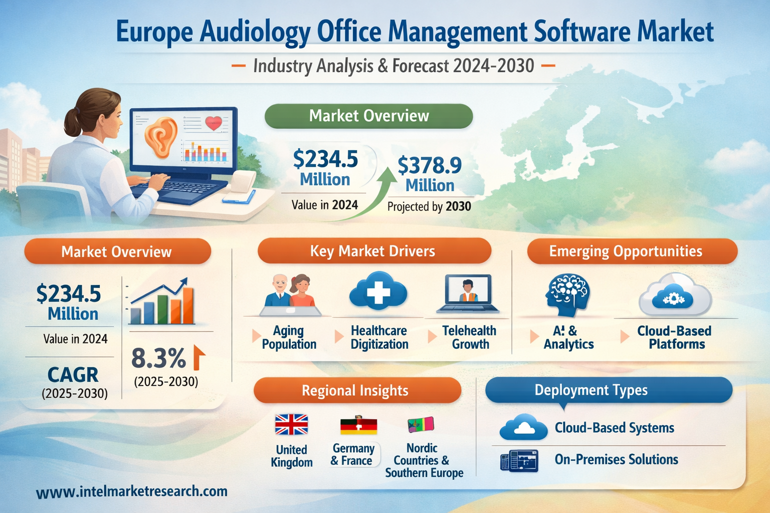 According to a new report from Intel Market Research, the Europe Audiology Office Management Software Market was valued at USD 234.5 million in 2024 and is projected to reach USD 378.9 million by 2030, growing at a steady CAGR of 8.3% during the forecast period (2025-2030). This expansion is being fueled by increasing digitization of healthcare infrastructure, rising hearing disorder prevalence among Europe's aging population, and widespread adoption of cloud-based practice management solutions.