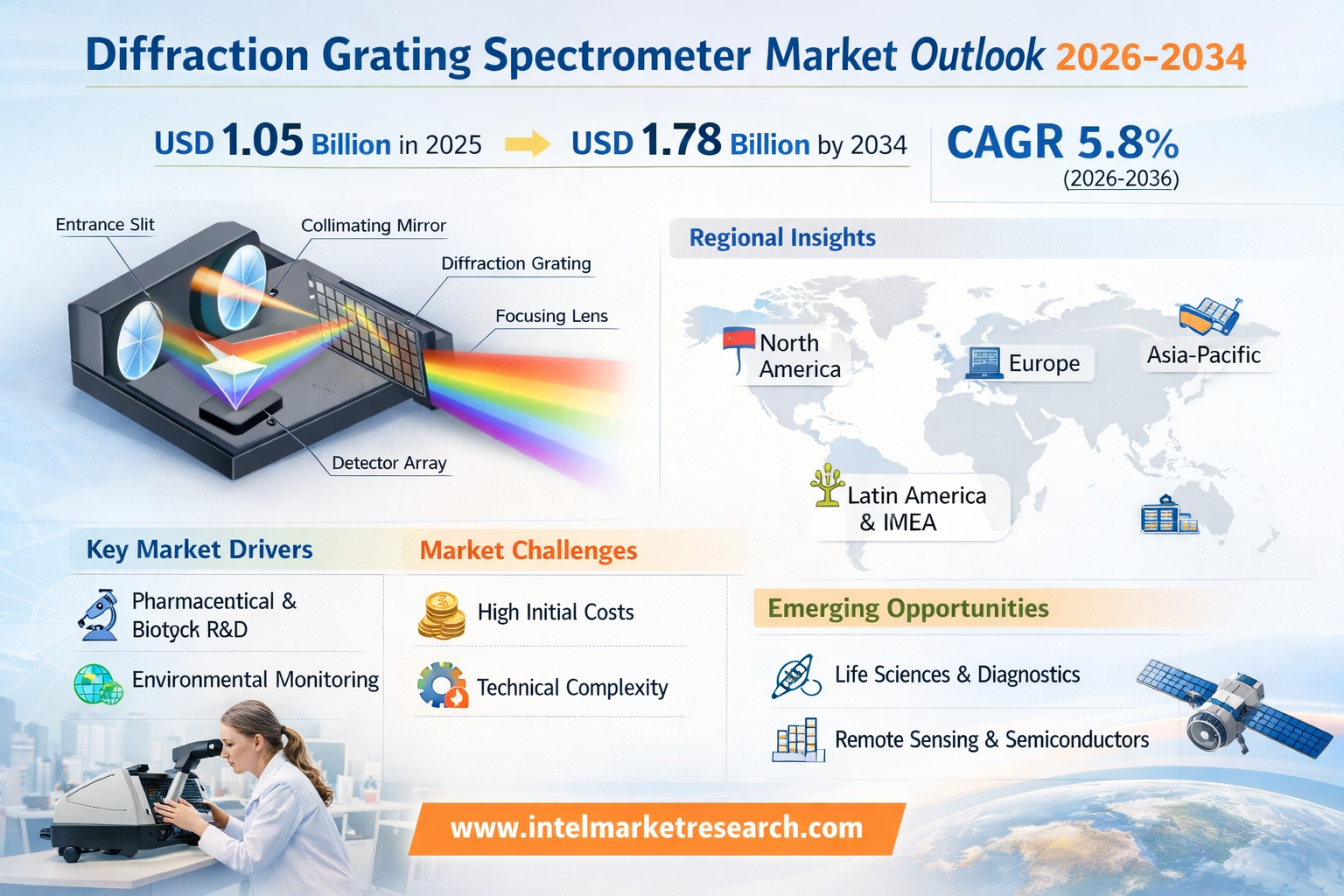 According to a new report from Intel Market Research, the global Diffraction Grating Spectrometer market was valued at USD 1.05 billion in 2025 and is projected to reach USD 1.78 billion by 2034, growing at a CAGR of 5.8% during the forecast period (2026–2034). This growth is propelled by increasing demand across research and development sectors in pharmaceuticals and biotechnology, stringent environmental regulations worldwide, and advancements in manufacturing technologies enabling compact and portable systems.