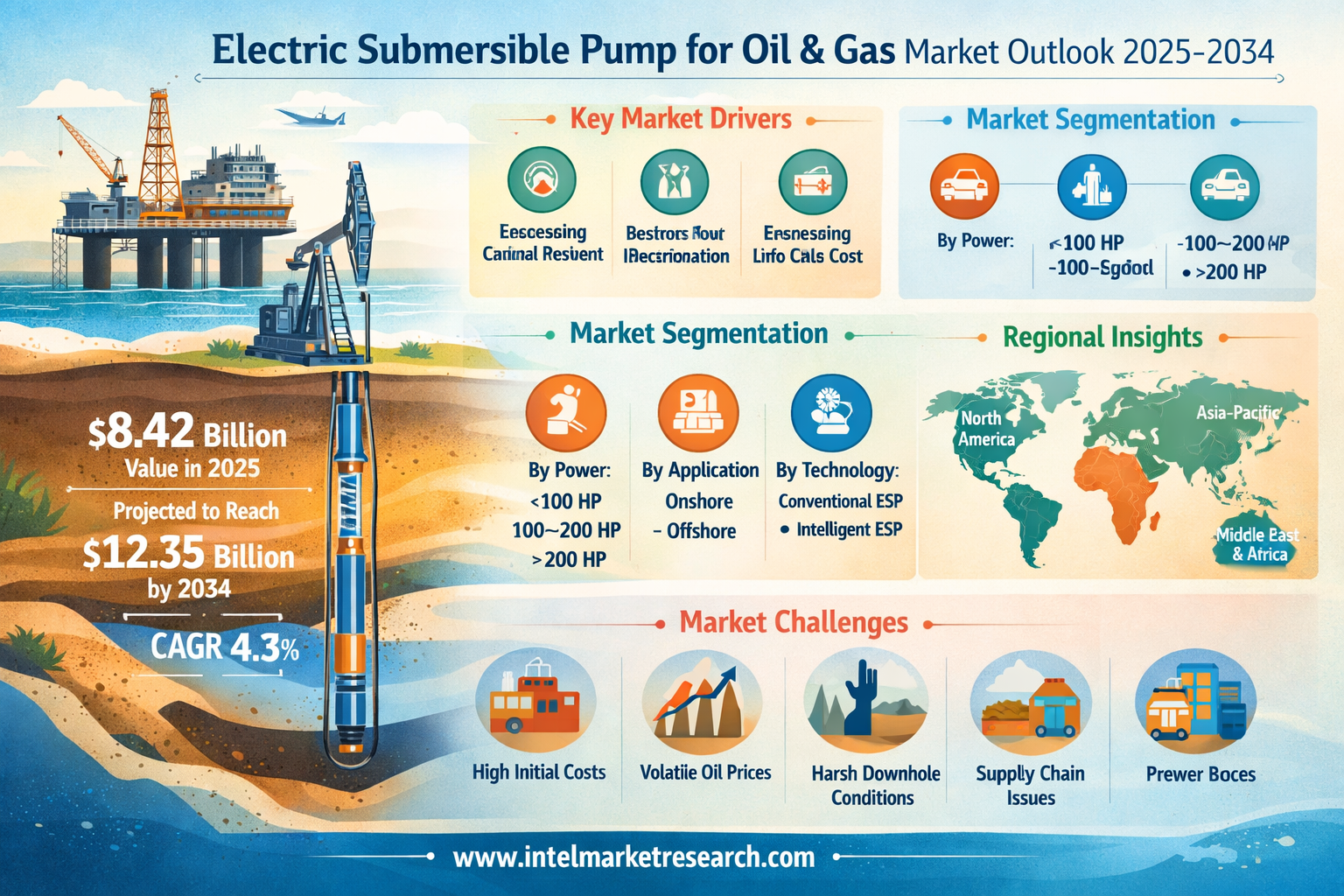 According to a new report from Intel Market Research, the global Electric Submersible Pump for Oil & Gas market was valued at USD 8.42 billion in 2025 and is projected to grow from USD 8.79 billion in 2026 to USD 12.35 billion by 2034, exhibiting a robust CAGR of 4.3% during the forecast period (2026–2034). This sustained growth is driven by the accelerating global demand for enhanced oil recovery from mature and depleting reservoirs, rising investment in deepwater and unconventional resource development, and the rapid integration of digital monitoring technologies into artificial lift systems.