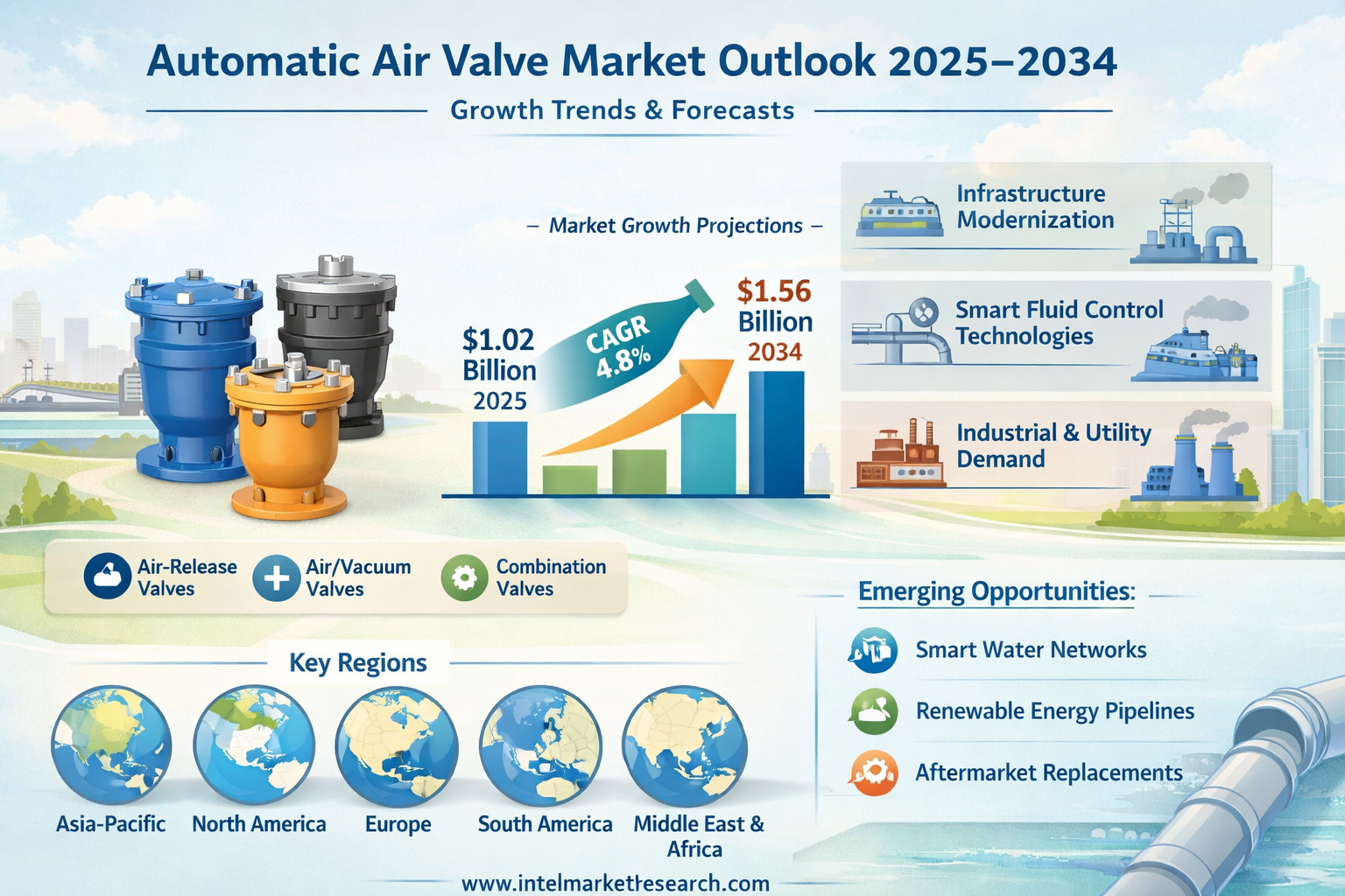 According to a new report from Intel Market Research, the global Automatic Air Valve market was valued at USD 1.02 billion in 2025 and is projected to grow from USD 1.07 billion in 2026 to reach USD 1.56 billion by 2034, exhibiting a steady CAGR of 4.8% during the forecast period (2025–2034). This growth is underpinned by accelerating global investments in water and wastewater infrastructure modernization, expanding municipal pipeline networks, and the rising adoption of smart fluid control technologies across industrial and utility sectors.