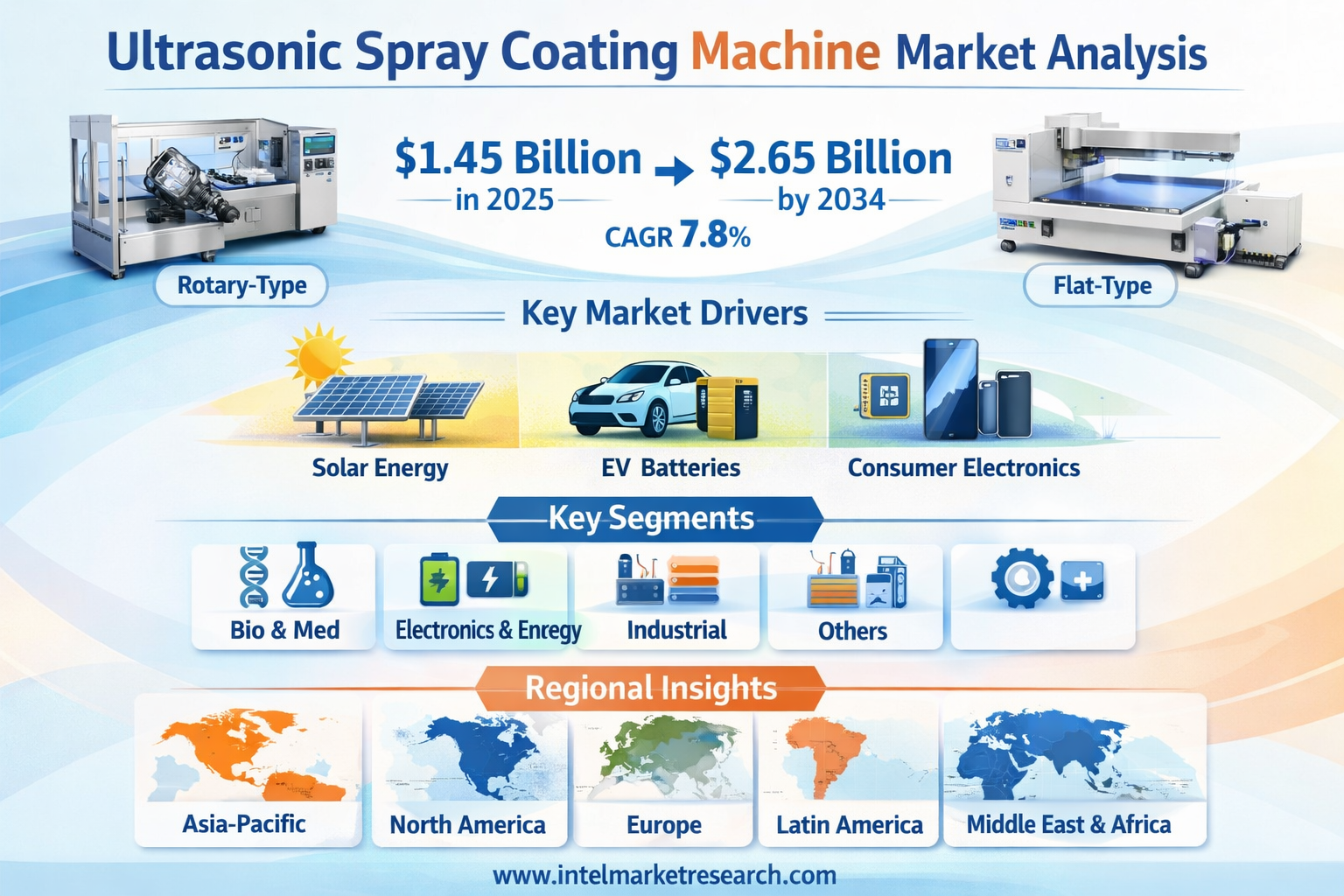 According to a new report from Intel Market Research, the global Ultrasonic Spray Coating Machine market was valued at USD 1.45 billion in 2025 and is projected to reach USD 2.65 billion by 2034, growing at a robust CAGR of 7.8% during the forecast period (2026–2034). This growth is propelled by the rapid expansion of the renewable energy sector particularly solar photovoltaics, the escalating demand for high-performance batteries for electric vehicles and consumer electronics, and stringent environmental regulations pushing industries toward low-waste, solvent-efficient technologies.