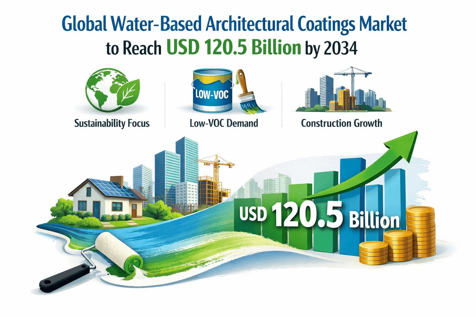 Global Water-Based Architectural Coatings Market to Reach USD 120.5 Billion by 2034 | Driven by Sustainability, Low-VOC Demand, and Construction Growth