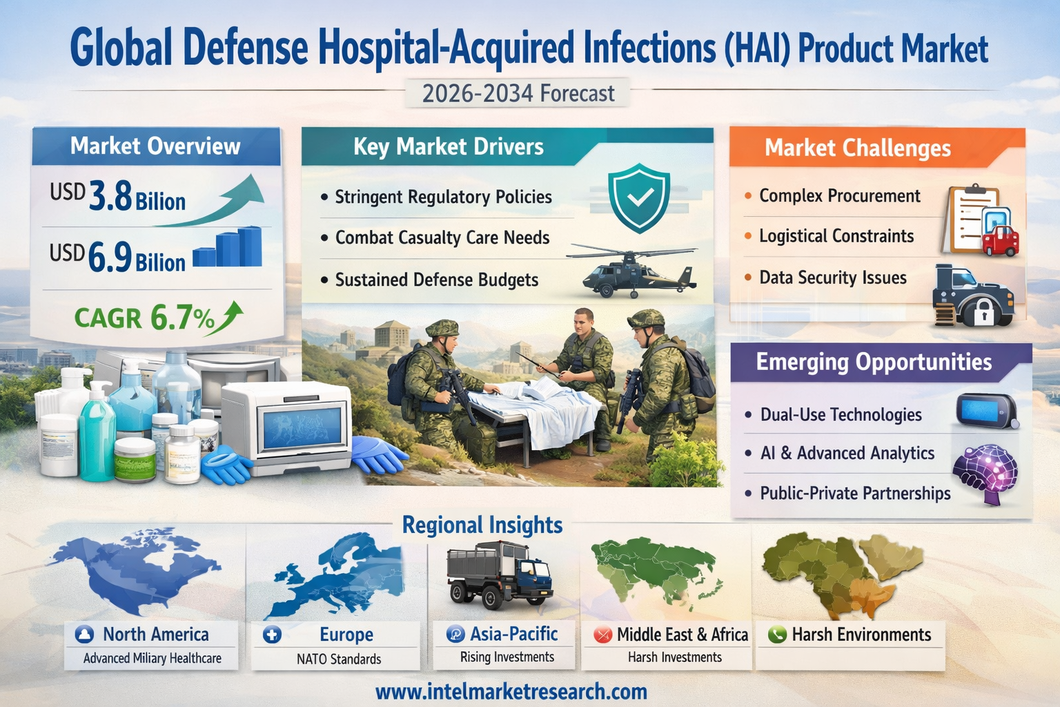 According to a new report from Intel Market Research, the global Defense Hospital-Acquired Infections (HAI) Product market was valued at USD 3.8 billion in 2025 and is projected to reach USD 6.9 billion by 2034, growing at a robust CAGR of 6.7% during the forecast period (2026–2034). This growth is propelled by stringent regulatory frameworks in military healthcare, heightened risks from combat casualty care, and sustained defense budgets prioritizing medical readiness and infection prevention.