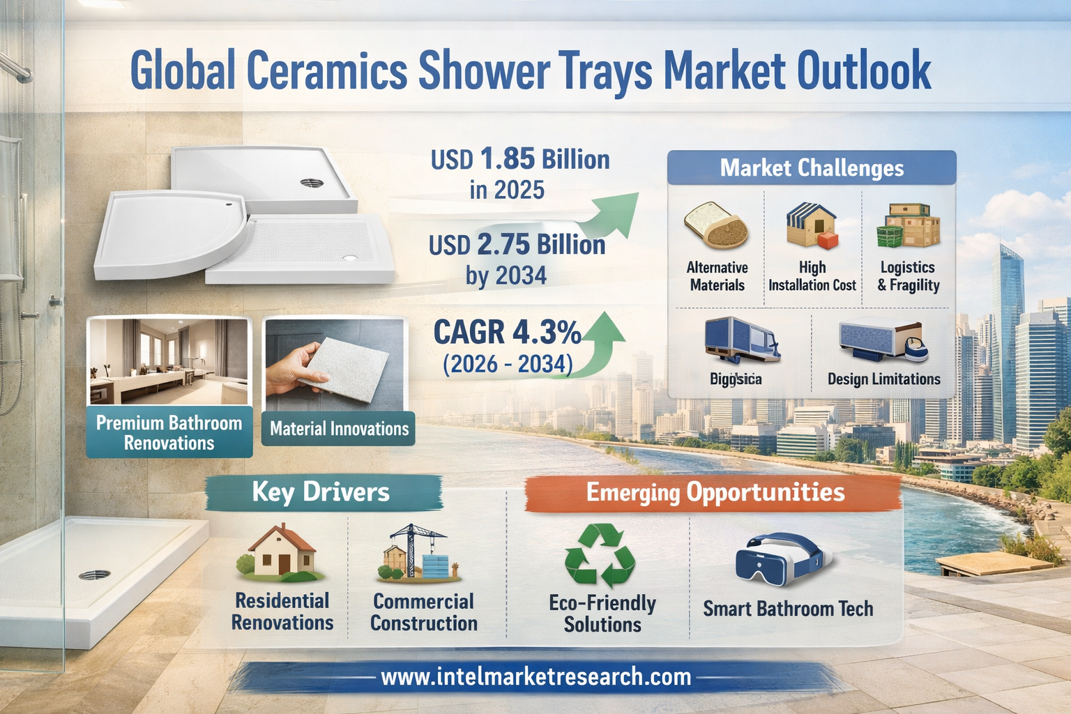 According to a new report from Intel Market Research, the global Ceramics Shower Trays market was valued at USD 1.85 billion in 2025 and is projected to reach USD 2.75 billion by 2034, growing at a robust CAGR of 4.3% during the forecast period (2026–2034). This growth is propelled by increasing renovation activities in residential sectors, rising demand for premium bathroom fittings in commercial construction projects, and advancements in ceramic materials offering superior durability, hygiene, and aesthetic appeal.