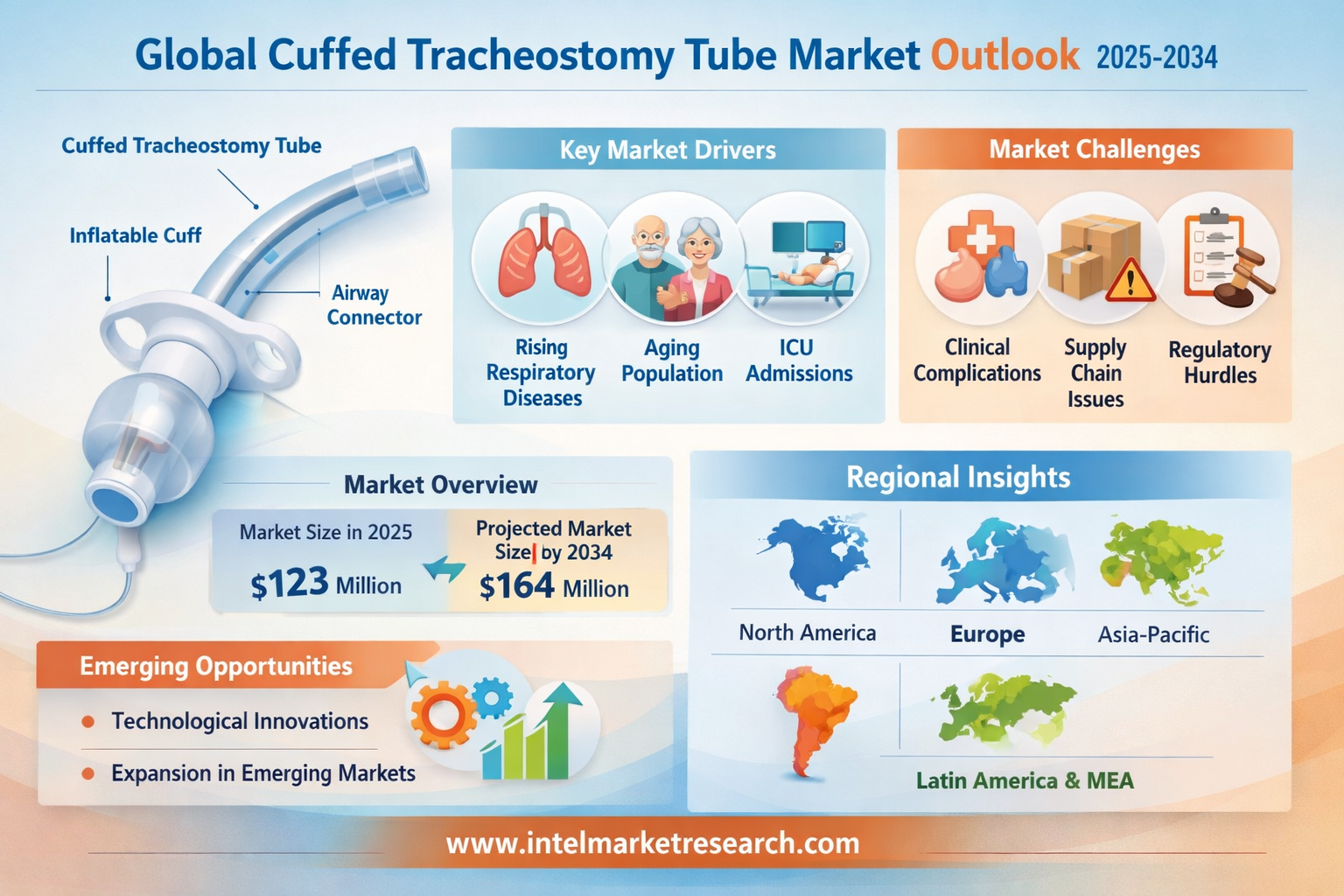 According to a new report from Intel Market Research, the global Cuffed Tracheostomy Tube market was valued at USD 123 million in 2025 and is projected to reach USD 164 million by 2034, growing at a CAGR of 4.3% during the forecast period (2025–2034). This growth is propelled by rising chronic respiratory diseases, increased ICU admissions, an aging population requiring long-term airway support, and innovations in biocompatible materials like PVC and silicone that enhance patient safety and comfort.