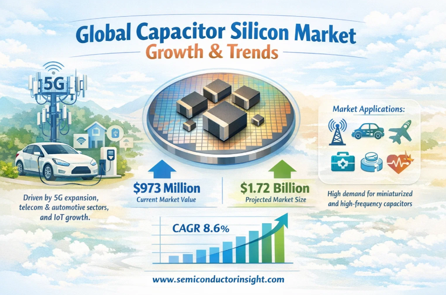Global Capacitor Silicon Market, valued at US$ 973 million in 2024, is poised for substantial growth, projected to reach US$ 1720 million by 2032. This expansion, representing a compound annual growth rate (CAGR) of 8.6%, is detailed in a comprehensive new report published by Semiconductor Insight. The study underscores the pivotal role of silicon capacitors in enabling high-frequency performance, miniaturization, and reliability across advanced electronic applications, particularly in telecommunications and automotive sectors.