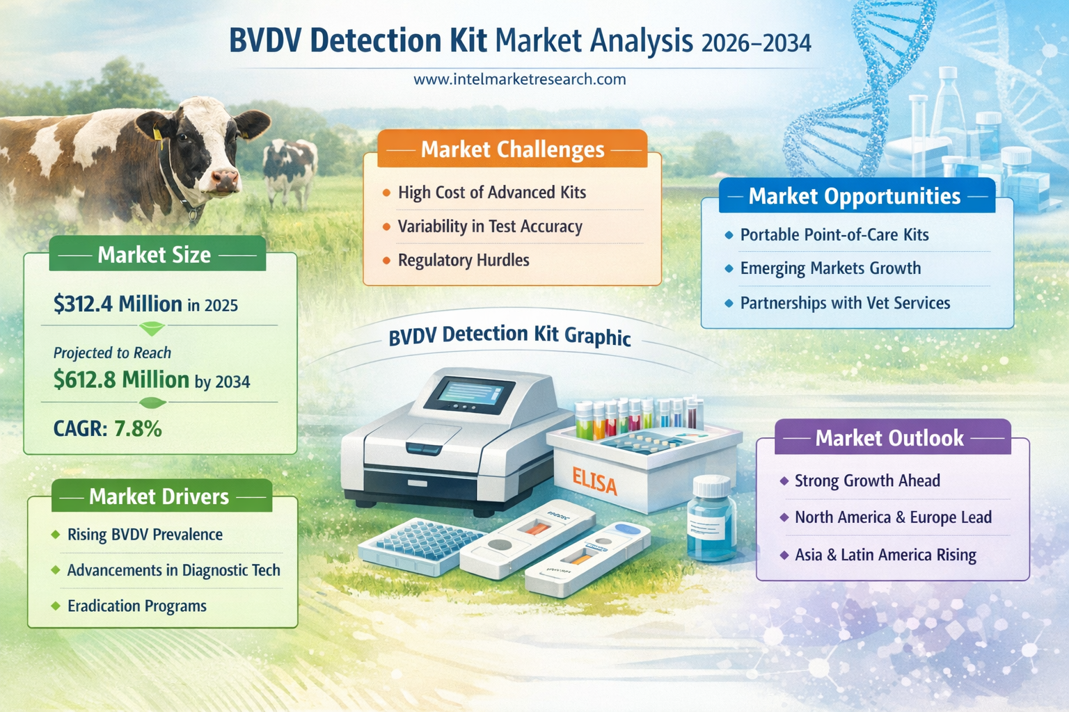 According to a new report from Intel Market Research, the global BVDV Detection Kit market was valued at USD 312.4 million in 2025 and is projected to reach USD 612.8 million by 2034, growing at a CAGR of 7.8% during the forecast period (2026–2034). This growth is propelled by rising global cattle inventories, increasing awareness of biosecurity protocols, the growing economic burden associated with BVDV-related livestock losses, and the widespread adoption of national and regional BVDV eradication programs across Europe and North America.