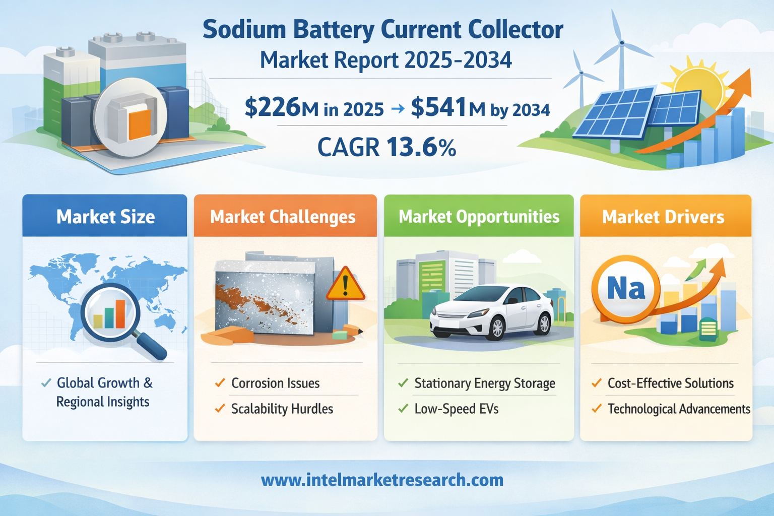 According to a new report from Intel Market Research, the global Sodium Battery Current Collector market was valued at USD 226 million in 2025 and is projected to reach USD 541 million by 2034, growing at a robust CAGR of 13.6% during the forecast period (2026–2034). This growth is propelled by the accelerated industrialization of sodium batteries, strong policy backing, and meaningful technological progress across the supply chain.