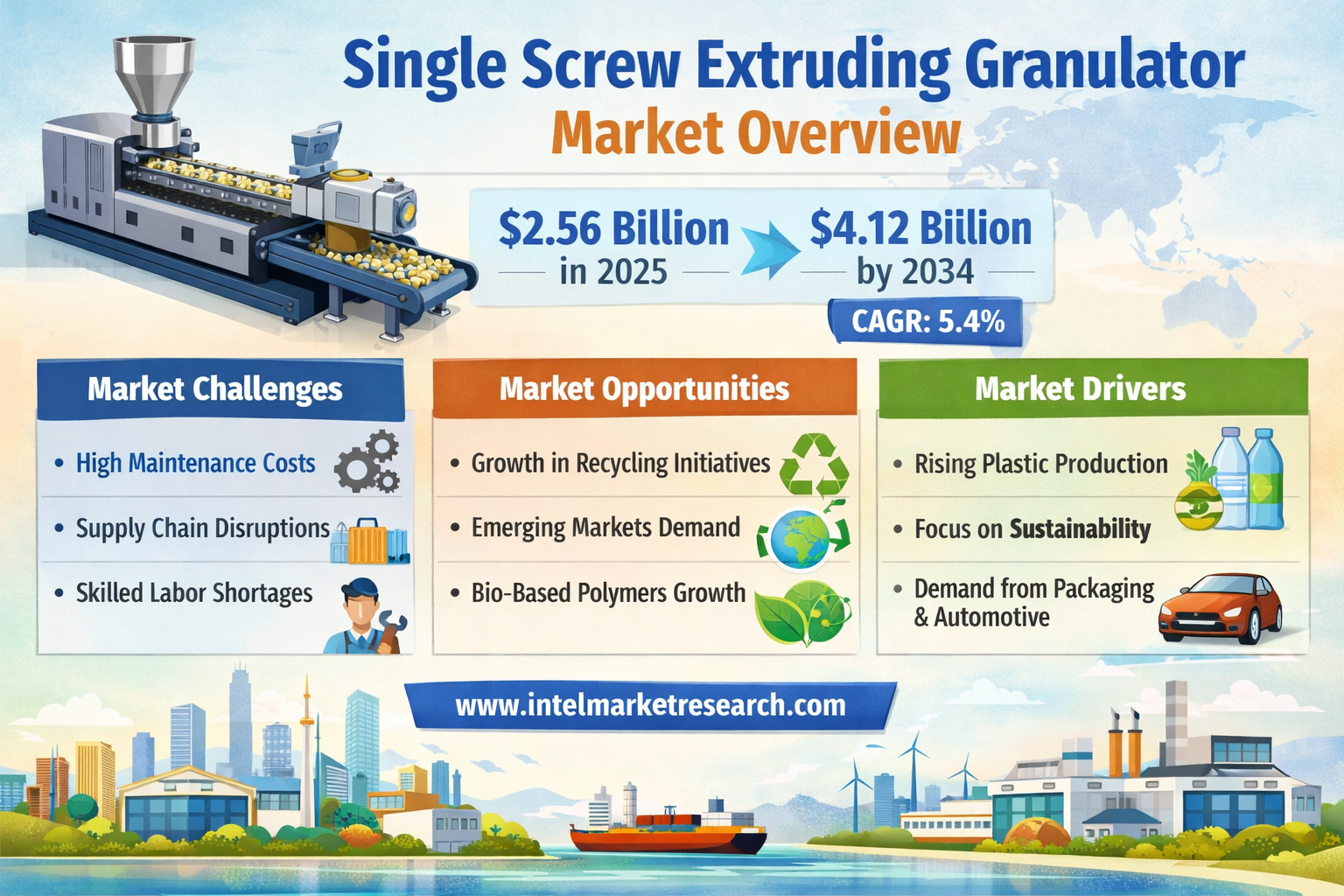 According to a new report from Intel Market Research, the global Single Screw Extruding Granulator market was valued at USD 2.56 billion in 2025 and is projected to reach USD 4.12 billion by 2034, growing at a CAGR of 5.4% during the forecast period (2026–2034). This growth is propelled by expanding plastic production worldwide, heightened focus on recycling and sustainability, and rising demand from manufacturing sectors including packaging and automotive.