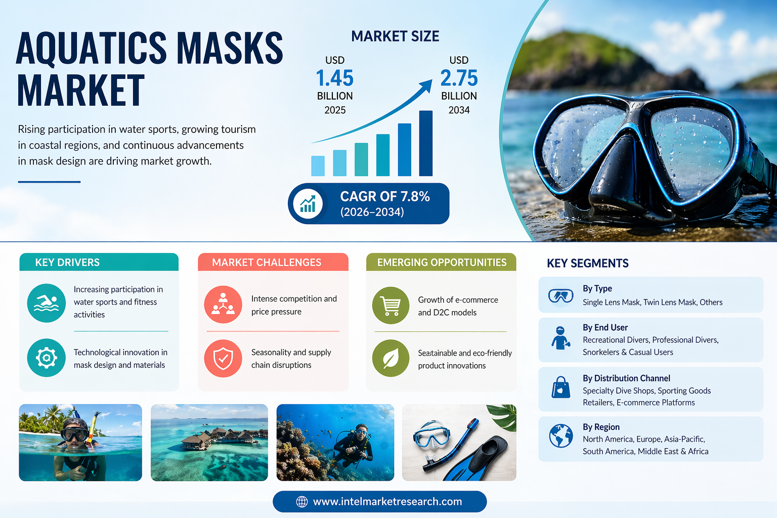 According to a new report from Intel Market Research, the global Aquatics Masks market was valued at USD 1.45 billion in 2025 and is projected to reach USD 2.75 billion by 2034, growing at a robust CAGR of 7.8% during the forecast period (2026–2034). This growth is propelled by increasing participation in water sports, rising tourism activities in coastal regions, and technological advancements in mask design for improved comfort and safety.