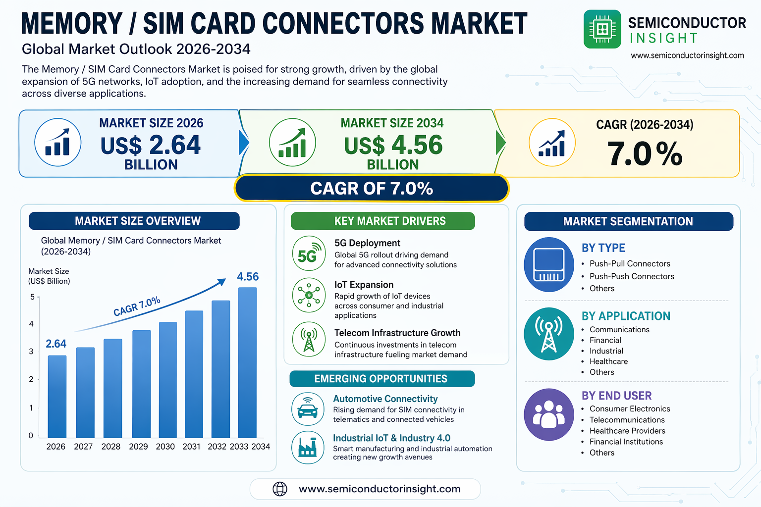 Memory / SIM Card Connectors Market 2034 CAGR 7.0% Driven by 5G and IoT