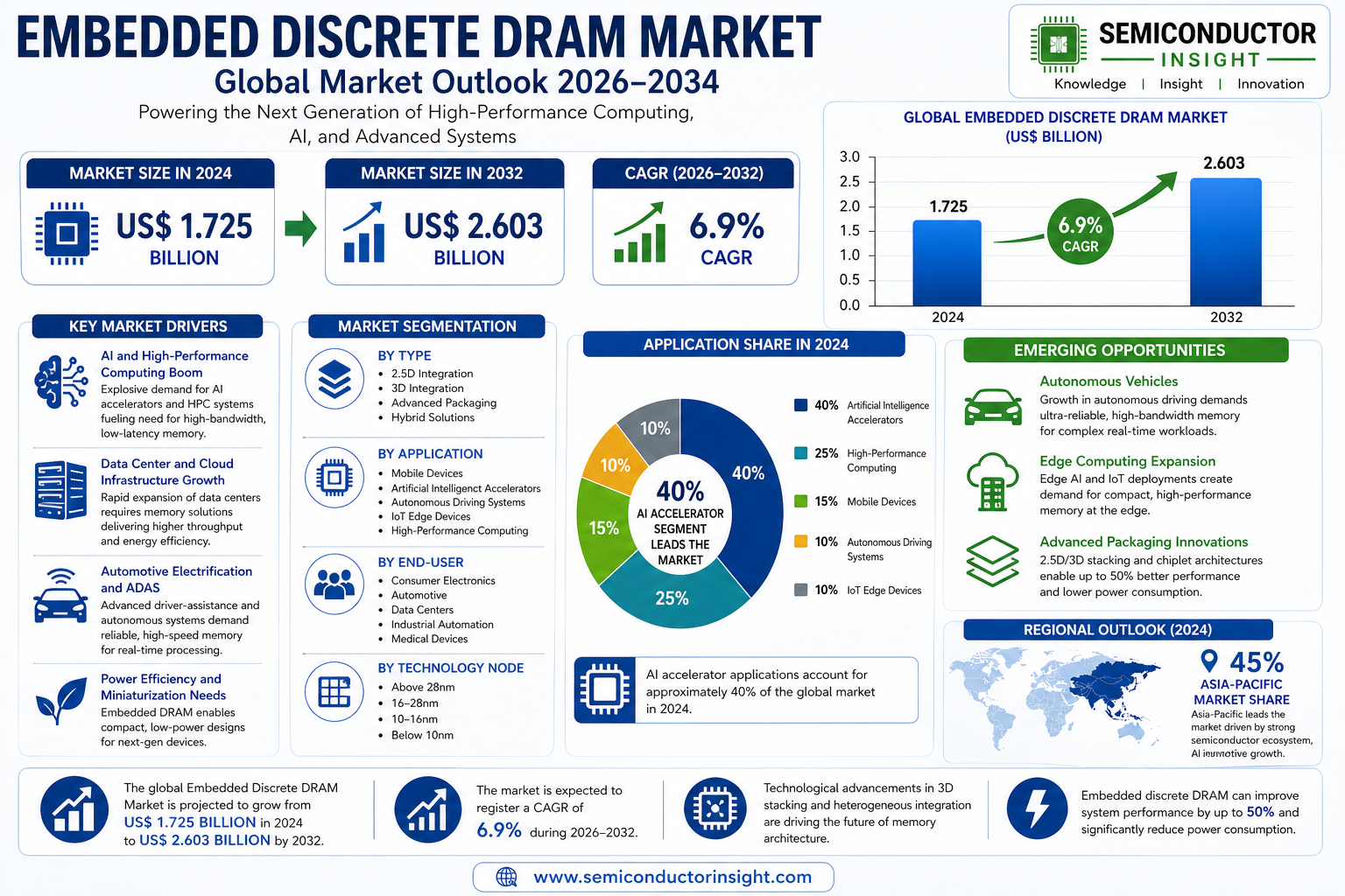 Global Embedded Discrete DRAM Market, valued at US$ 1.725 billion in 2024, is poised for substantial growth, projected to reach US$ 2.603 billion by 2032. This expansion represents a compound annual growth rate (CAGR) of 6.9%, as detailed in a comprehensive new report published by Semiconductor Insight. The study underscores the critical role of embedded discrete DRAM in enabling high-performance computing, artificial intelligence, and advanced automotive systems by providing superior bandwidth and reduced latency compared to traditional memory solutions.