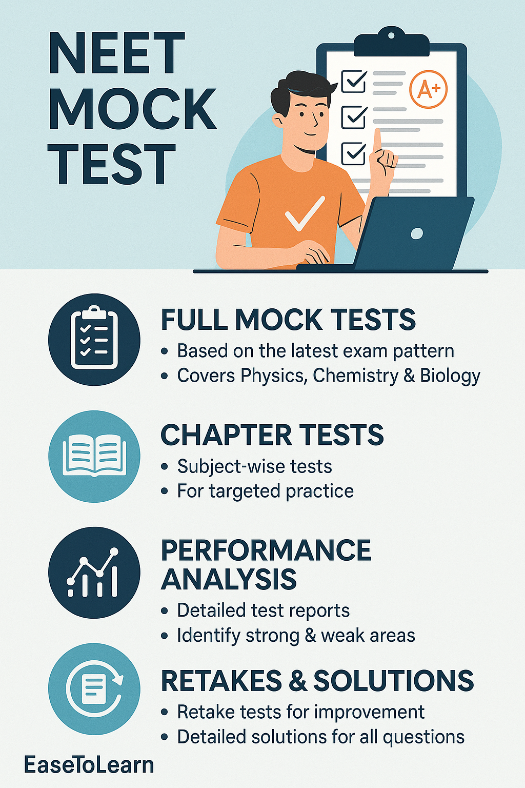 EaseToLearn offers comprehensive preparation resources aligned with the NEET PG Exam Pattern 2026. From detailed study materials to real-time mock tests, the platform is designed to help aspirants succeed.