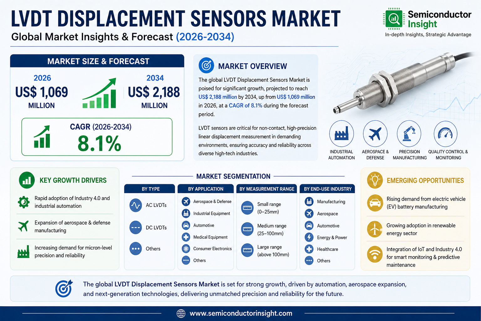 Global LVDT Displacement Sensors Market, valued at a robust US$ 991 million in 2024, is on a trajectory of significant expansion, projected to reach US$ 1704 million by 2032. This growth, representing a compound annual growth rate (CAGR) of 8.1%, is detailed in a comprehensive new report published by Semiconductor Insight. The study highlights the critical role of these specialized precision measurement devices in ensuring accuracy and reliability across high-tech manufacturing, aerospace, and industrial automation sectors.