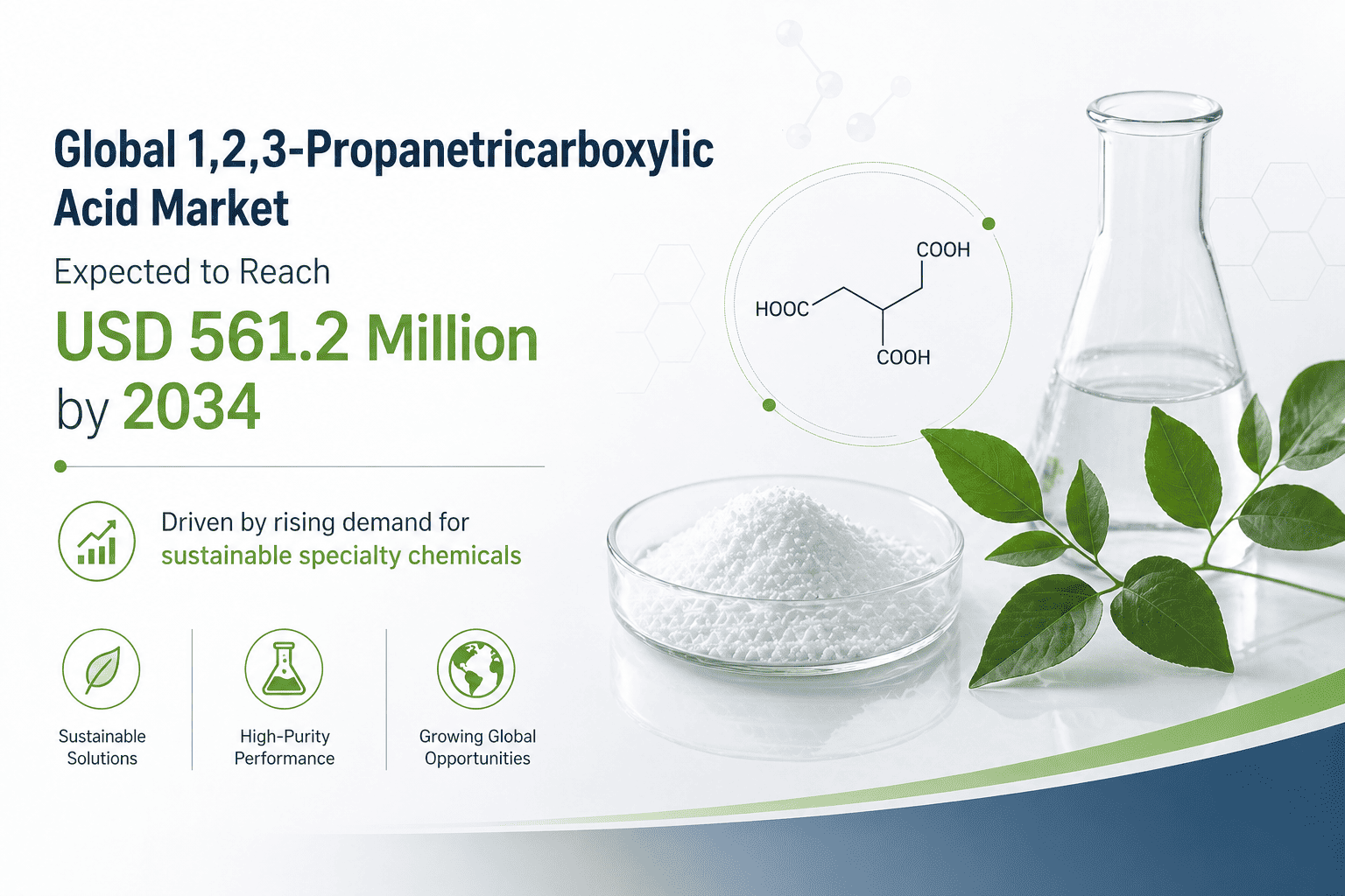Global 1,2,3-Propanetricarboxylic Acid Market Expected to Reach USD 561.2 Million by 2034 Amid Rising Demand for Sustainable Specialty Chemicals