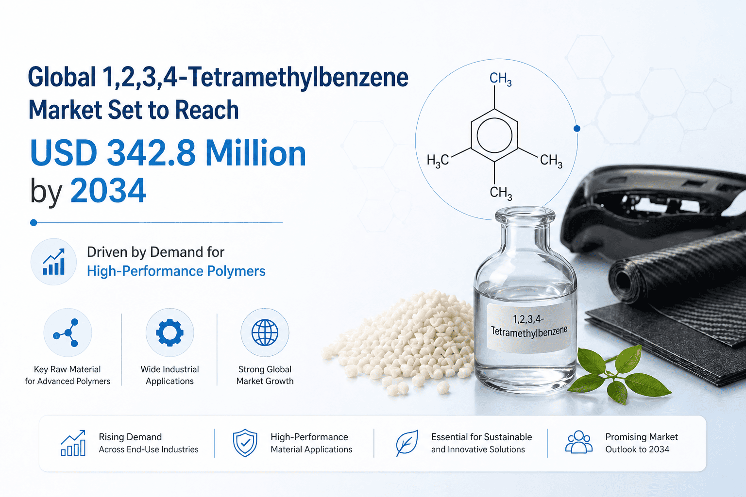 Global 1,2,3,4-Tetramethylbenzene Market Set to Reach USD 342.8 Million by 2034 Driven by Demand for High-Performance Polymers