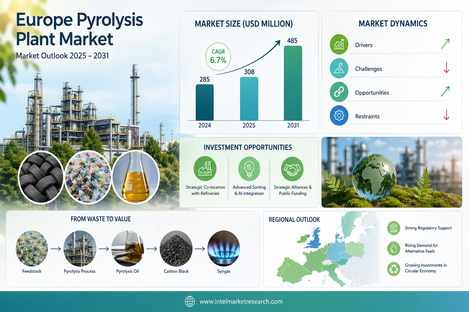 Europe Pyrolysis Plant Market Outlook (2025–2031): Advancing Circular Economy Through Waste-to-Energy Innovation