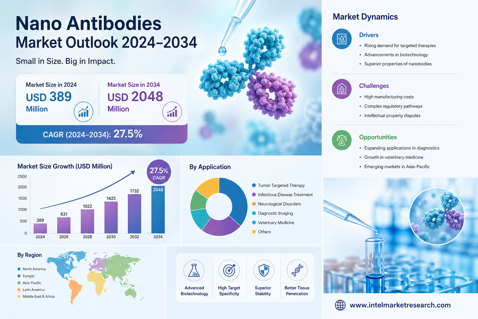 According to a new report from Intel Market Research, the global Nano Antibodies market was valued at USD 389 million in 2024 and is projected to reach USD 2048 million by 2034, growing at an exceptional CAGR of 27.5% during the forecast period (2024-2034). This remarkable growth trajectory is fueled by rapid advancements in biotechnology, increasing demand for targeted therapeutics, and the unique advantages of nanobodies over conventional antibody treatments.