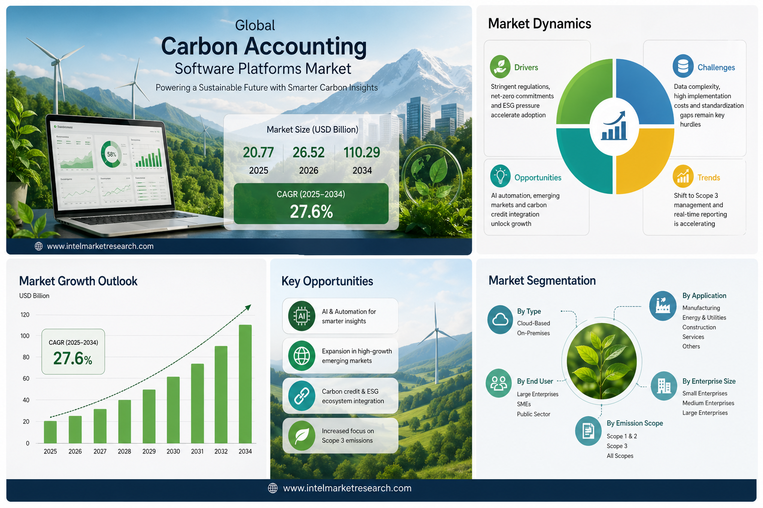 According to a new report from Intel Market Research, the global Carbon Accounting Software Platforms market was valued at USD 20.77 billion in 2025 and is projected to grow from USD 26.52 billion in 2026 to reach USD 110.29 billion by 2034, exhibiting a robust CAGR of 27.6% during the forecast period (2025–2034). This remarkable expansion is propelled by escalating regulatory mandates, surging corporate net-zero commitments, and the increasing complexity of Scope 3 emissions management across global value chains.