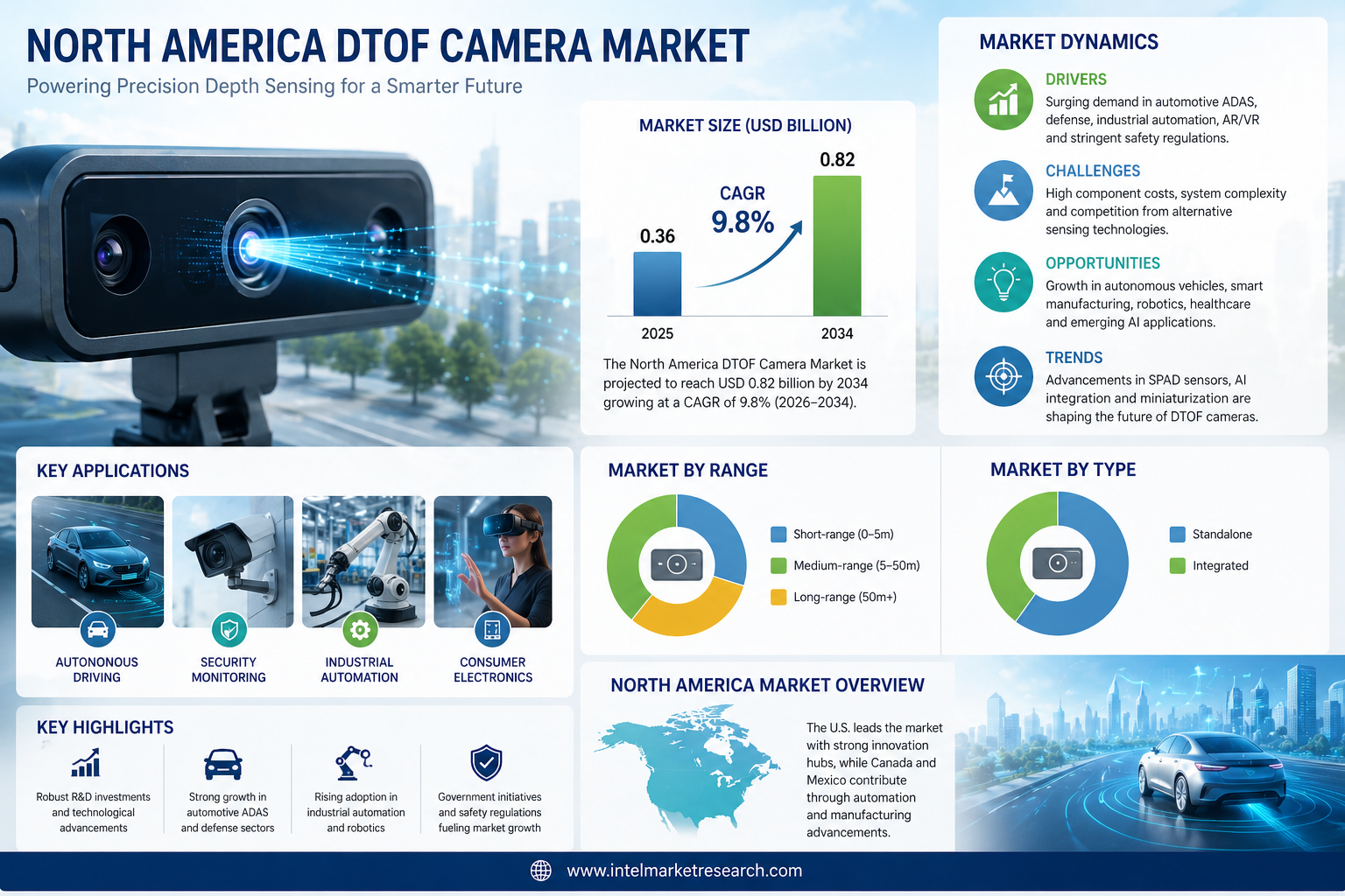 North America DTOF Camera Market Poised for Strong Growth, Reaching USD 0.82 Billion by 2034 Driven by ADAS, AR/VR, and Industrial Automation Demand