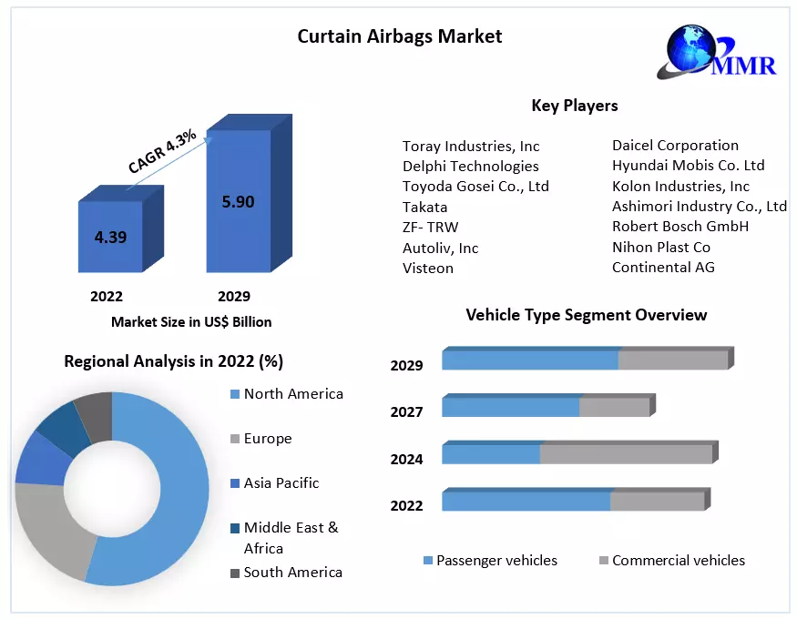 Curtain Airbags Market size is projected to reach US$ 5.90 Bn. by end of 2029, at a CAGR of 4.3%.