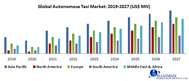 Autonomous Taxi Market is expected to reach US$ 35.43 Bn by 2027, at a CAGR of 70.15% during the forecast period.