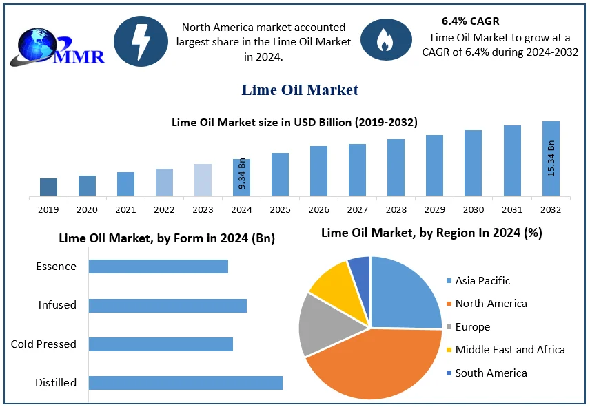 According to the latest industry analysis, the global lime oil market was valued at USD 9.34 billion in 2024 and is expected to grow at a compound annual growth rate (CAGR) of 6.4% from 2025 to 2032, reaching nearly USD 15.34 billion by 2032. The study also evaluates the revenue impact of the COVID-19 pandemic across market leaders, followers, and new entrants, with the effects clearly reflected in current market dynamics and recovery trends.