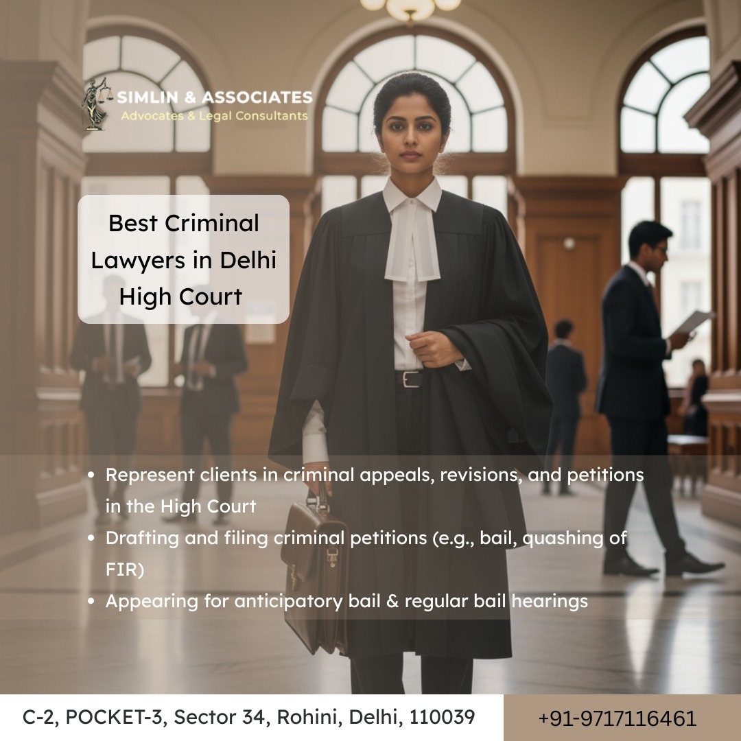 As a leading criminal defence lawyer practicing before the “Delhi High Court”, Advocate Simlin Kaur is widely recognised for her result-oriented approach, ethical practice, and personalised legal strategies. Her work reflects a deep understanding of criminal jurisprudence combined with practical courtroom experience.