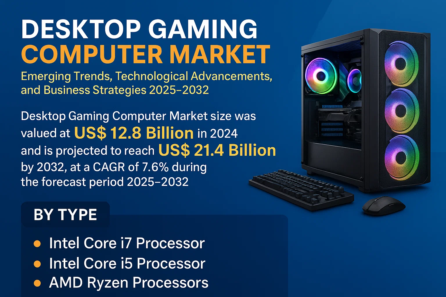 Global Desktop Gaming Computer Market was valued at USD 12.8 billion in 2024 and is projected to reach USD 21.4 billion by 2032, exhibiting a CAGR of 7.6% during the forecast period 2026–2034. The market is expanding steadily, supported by rising esports participation and demand for high-fidelity gaming performance.
