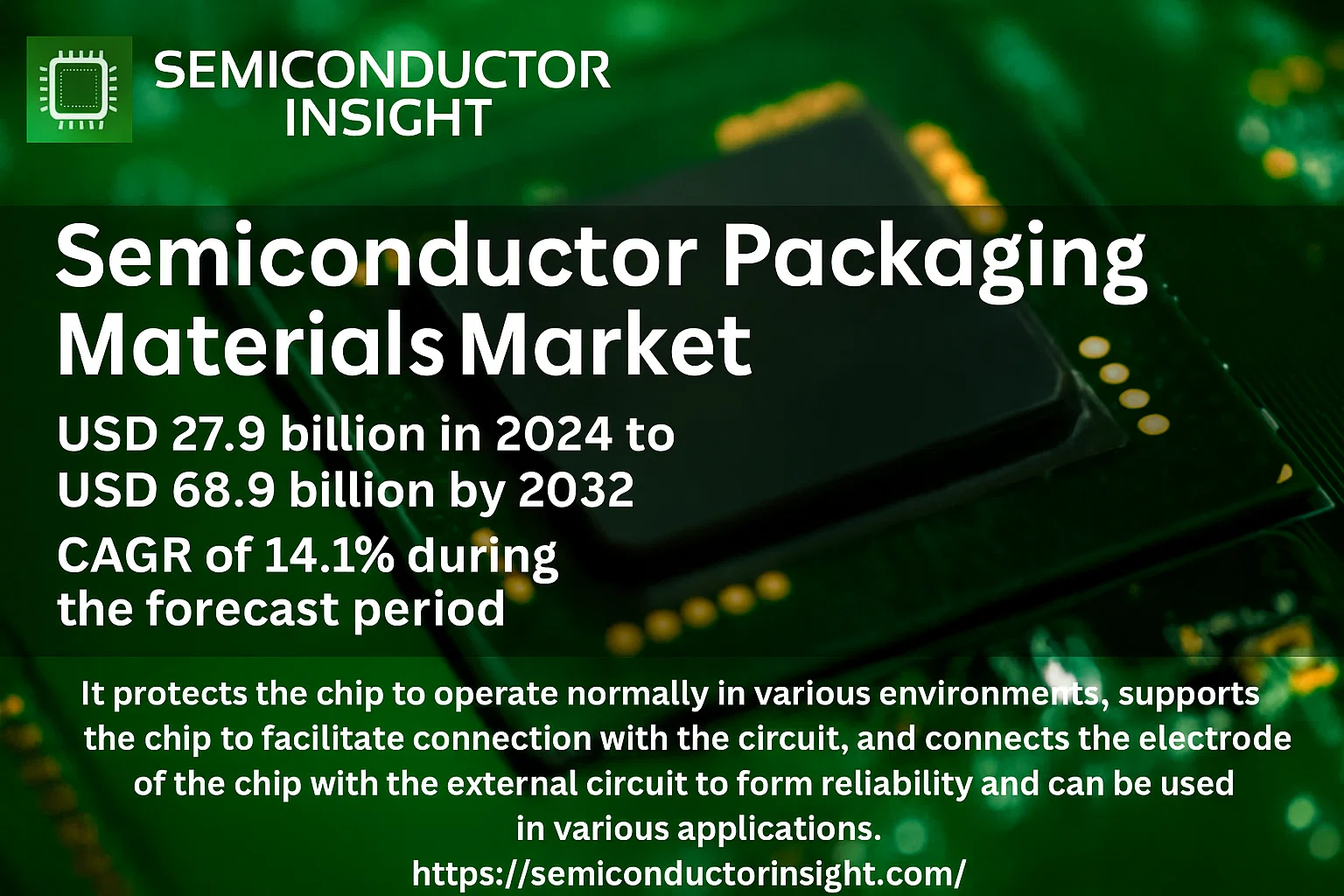 global Semiconductor Packaging Materials Market was valued at USD 27.9 billion in 2024 and is projected to reach USD 68.9 billion by 2032, registering a CAGR of 14.1% during the forecast period 2025–2032. Market expansion is fueled by the rapid growth of advanced electronics, increasing adoption of artificial intelligence (AI), Internet of Things (IoT), high-performance computing, and the growing semiconductor demand in automotive and electric vehicle applications.