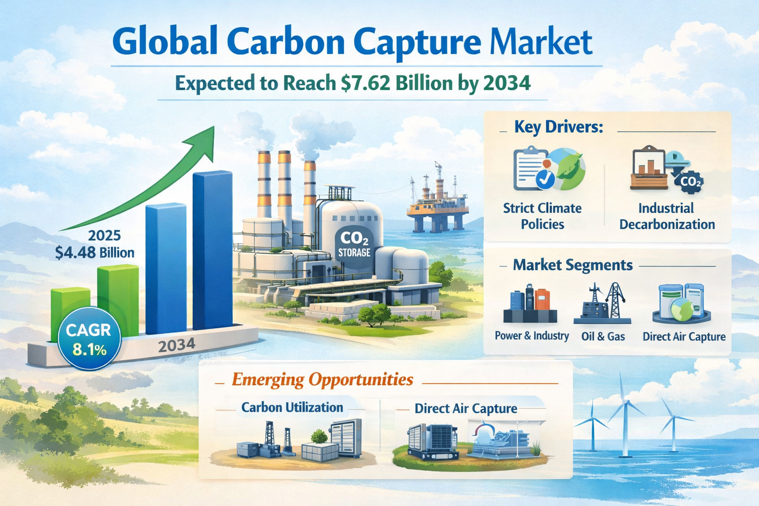 Global Carbon Capture Market Expected to Reach 7.62 Billion by 2034 Driven by Climate Policies and Clean Technology Growth