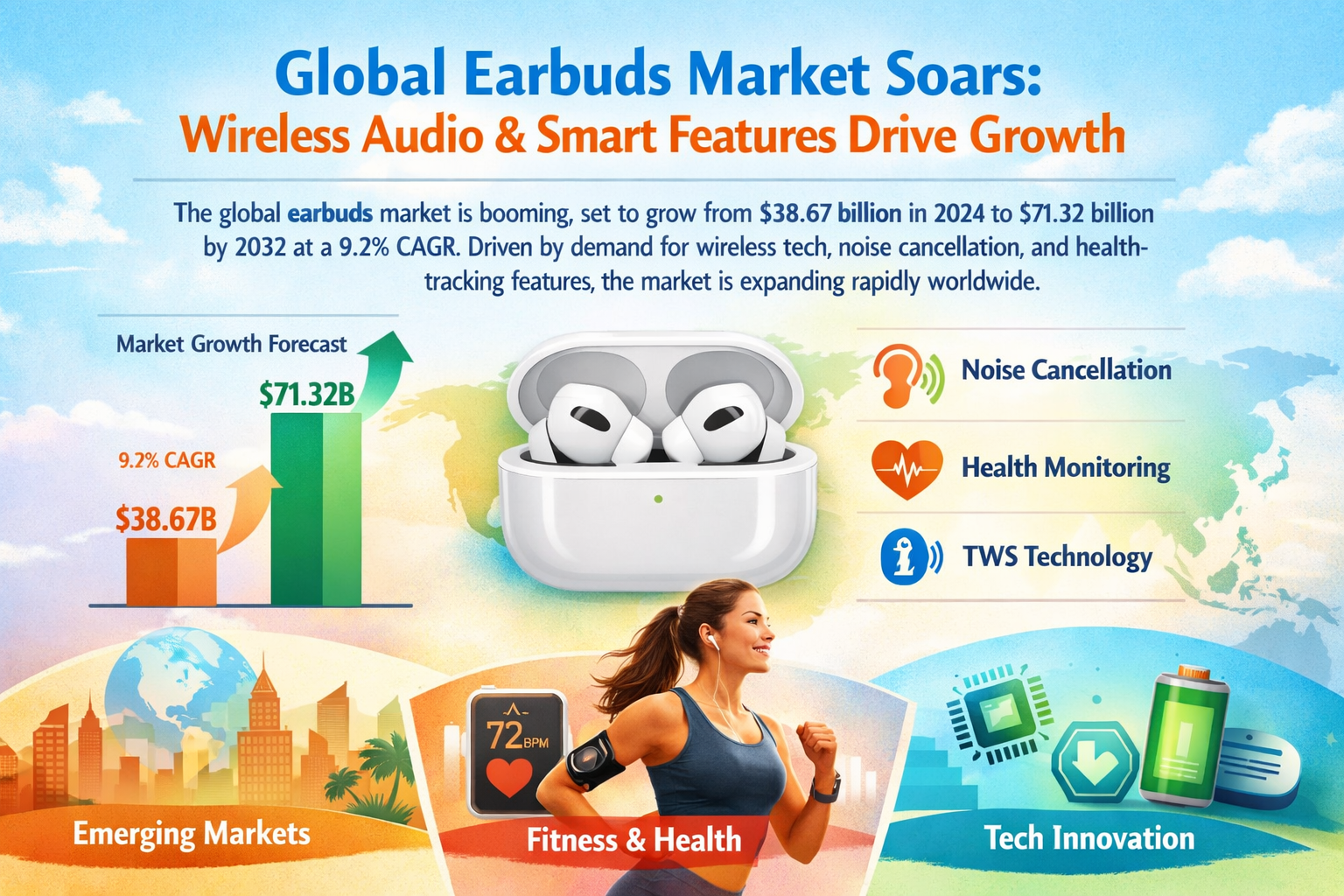 Global earbuds market surges with wireless demand and smart features driving strong growth next soon