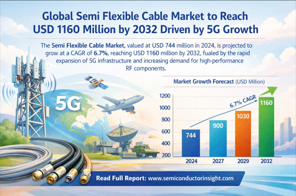 Global Semi Flexible Cable Market, valued at USD 744 million in 2024, is on a sustained growth trajectory, projected to reach USD 1160 million by 2032. This expansion, representing a compound annual growth rate (CAGR) of 6.7%, is detailed in a comprehensive new report from Semiconductor Insight. The analysis underscores the critical role these cables play in providing a unique balance of high-frequency performance, similar to semi-rigid types, with the crucial advantage of being formable by hand for installation and maintenance, a key attribute driving their adoption in critical communication, aerospace, and defense systems.