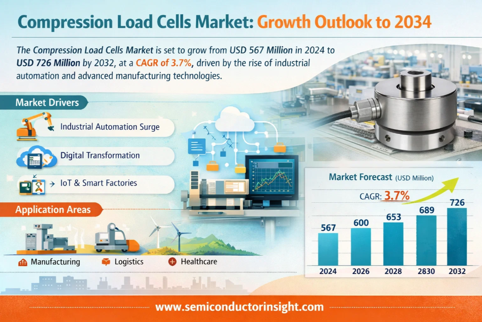 Global Compression Load Cells Market, valued at US$ 567 million in 2024, is projected to reach US$ 726 million by 2032, growing at a CAGR of 3.7% during the forecast period, according to a comprehensive new report published by Semiconductor Insight. These precision measurement devices play a critical role across industries where accurate force and weight measurement are paramount, from manufacturing plants to laboratory environments.
