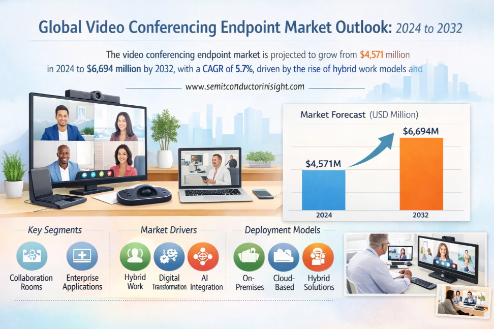 Global Video Conferencing Endpoint Market, valued at a robust US$ 4,571 million in 2024, is on a trajectory of steady expansion, projected to reach US$ 6,694 million by 2032. This growth, representing a compound annual growth rate (CAGR) of 5.7%, is detailed in a comprehensive new report published by Semiconductor Insight. The study highlights the critical role of these specialized communication devices in enabling seamless remote collaboration across various industries, particularly in the era of hybrid work models.