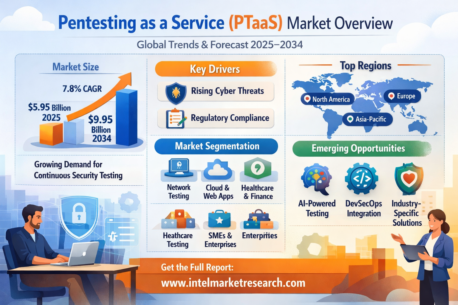 According to a new report from Intel Market Research, the global Pentesting as a Service (PTaaS) market was valued at USD 5.95 billion in 2025 and is projected to reach USD 9.95 billion by 2034, growing at a healthy CAGR of 7.8% during the forecast period (2026–2034). This growth trajectory stems from escalating cyber threats, stringent regulatory mandates, and widespread cloud adoption across enterprises globally.
