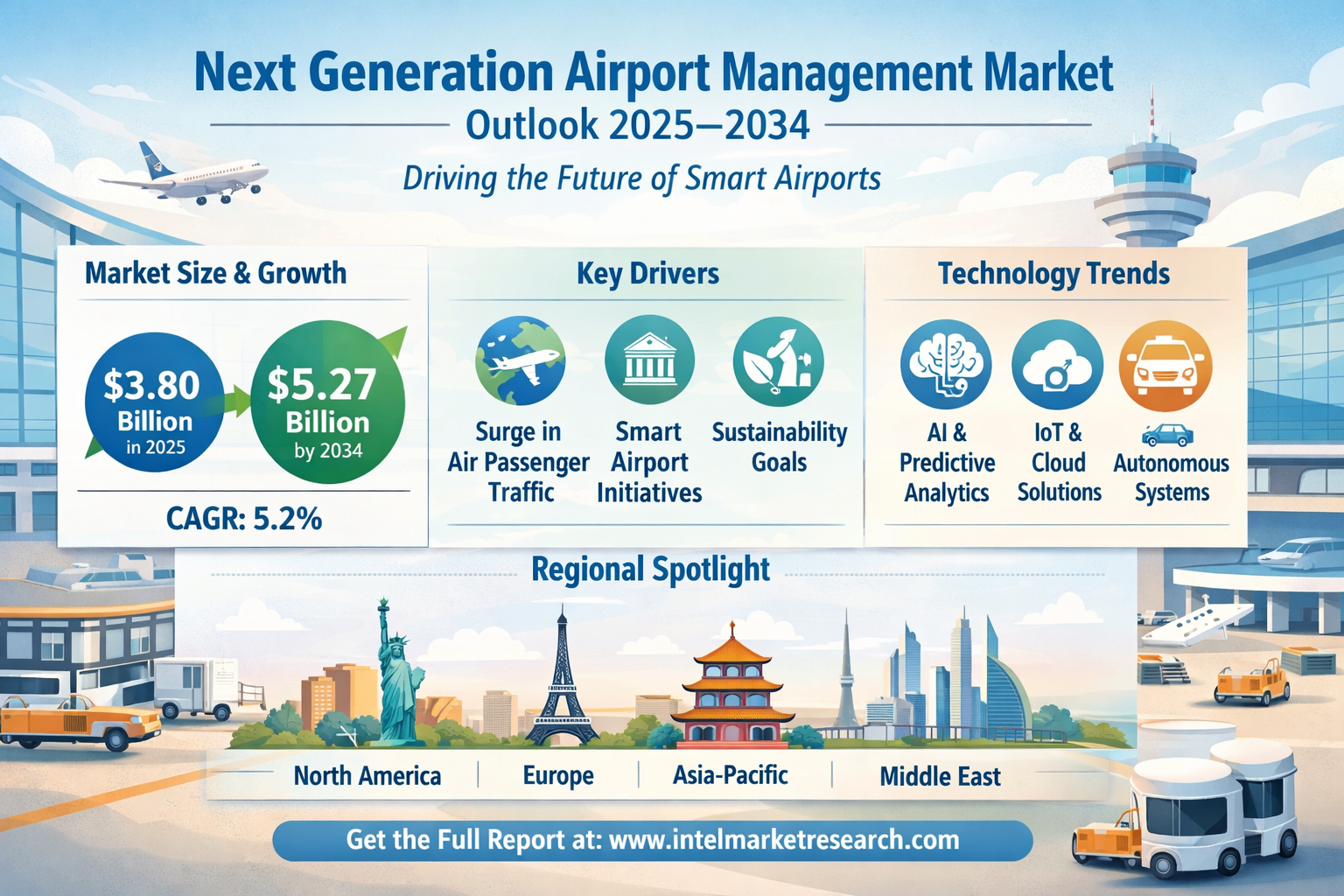 According to new research from Intel Market Research, the global Next Generation Airport Management market was valued at USD 3.80 billion in 2025 and is projected to reach USD 5.27 billion by 2034, growing at a steady CAGR of 5.2% during the forecast period (2026-2034). This transformation is being driven by digitalization demands across global aviation infrastructure and the pressing need for operational efficiency as passenger volumes soar.