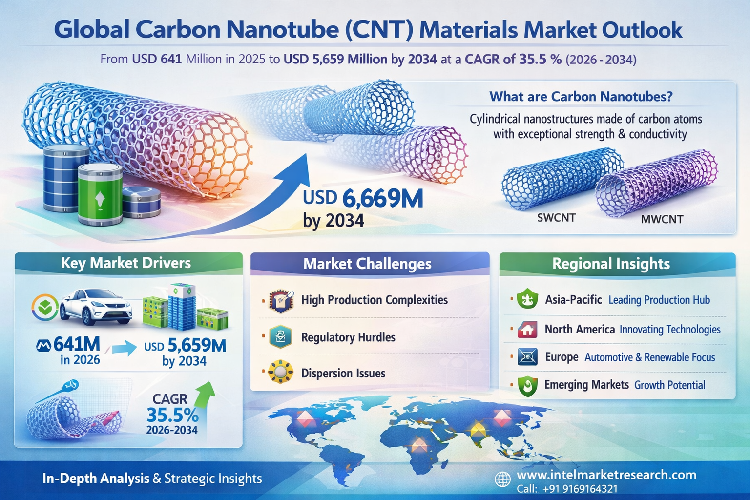 According to a new report from Intel Market Research, the global Carbon Nanotube (CNT) Materials market was valued at USD 641 million in 2025 and is projected to reach USD 5,659 million by 2034, growing at a remarkable CAGR of 35.5% during the forecast period (2026-2034). This explosive growth stems from escalating demand in energy storage solutions, particularly electric vehicle batteries where CNTs enhance electrode conductivity, coupled with expanding applications in electronics, aerospace, and biomedical sectors.