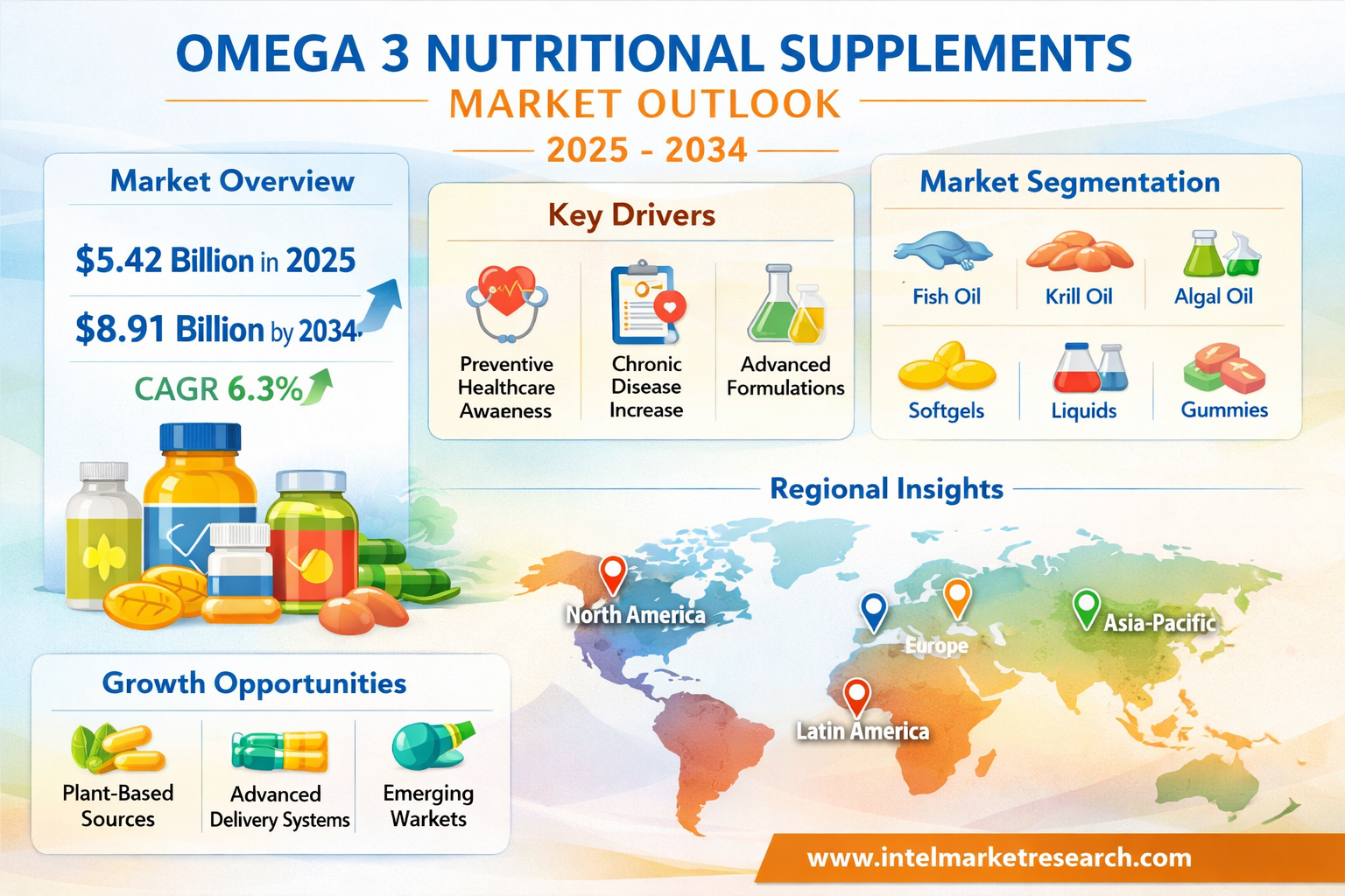 According to a new report from Intel Market Research, the global Omega 3 nutritional supplements market was valued at USD 5.42 billion in 2025 and is projected to reach USD 8.91 billion by 2034, growing at a CAGR of 6.3% during the forecast period (2026-2034). This growth is driven by increasing consumer awareness about preventive healthcare, rising prevalence of chronic diseases, and technological advancements in supplement formulations.