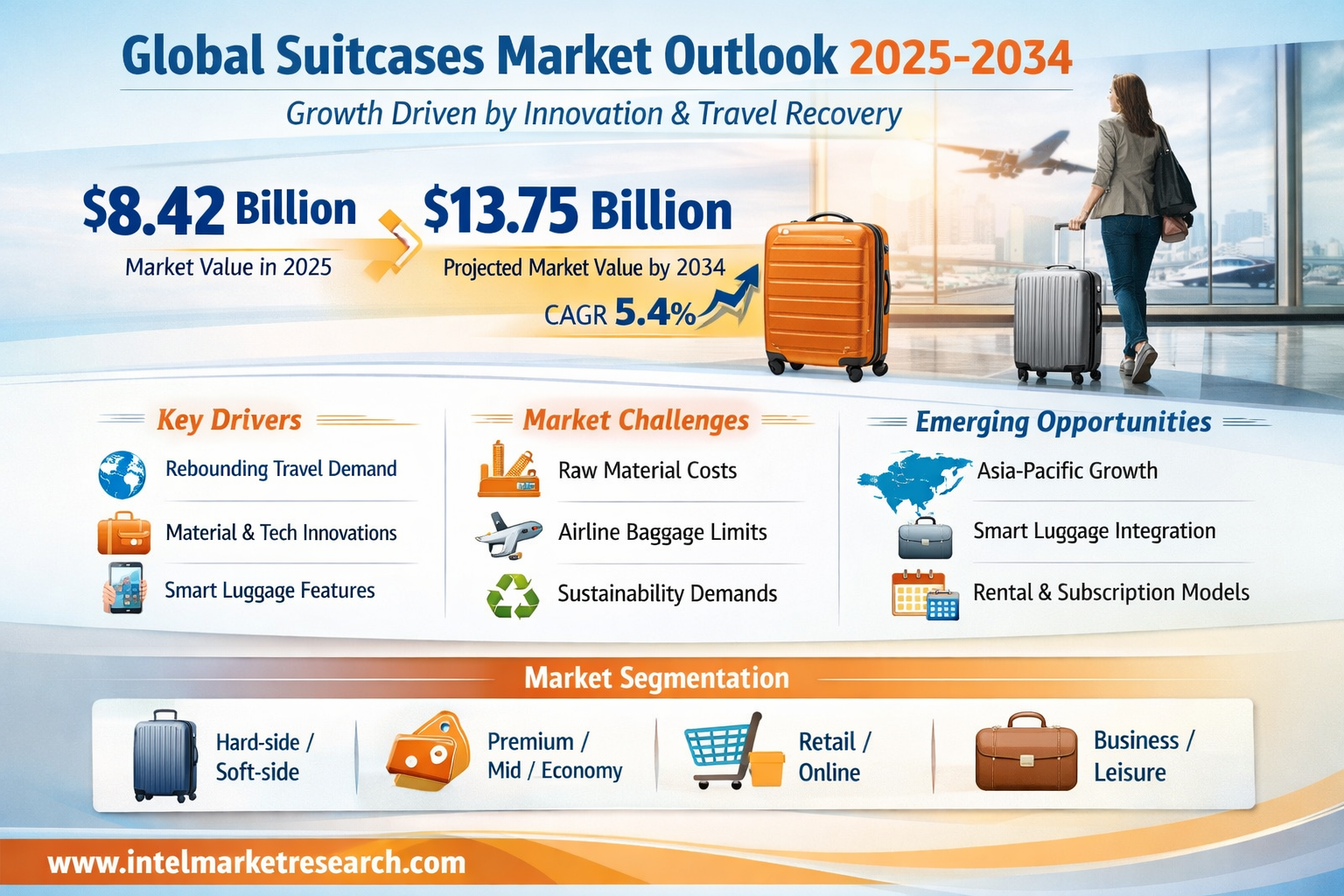 According to a new report from Intel Market Research, the global suitcases market was valued at USD 8.42 billion in 2025 and is projected to reach USD 13.75 billion by 2034, growing at a CAGR of 5.4% during the forecast period (2026-2034). This growth is driven by rebounding international travel demand, innovations in lightweight materials, and changing consumer preferences for durable and technologically advanced luggage solutions.