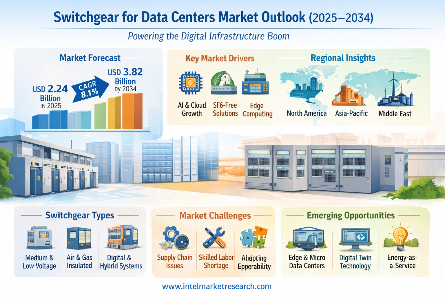According to a new report from Intel Market Research, the global switchgear for data centers market was valued at USD 2.24 billion in 2025 and is projected to reach USD 3.82 billion by 2034, growing at a steady CAGR of 8.1% during the forecast period (2025–2034). This expansion reflects the critical role of switchgear in supporting the digital infrastructure boom, where reliable power distribution is no longer optional but mission-critical.