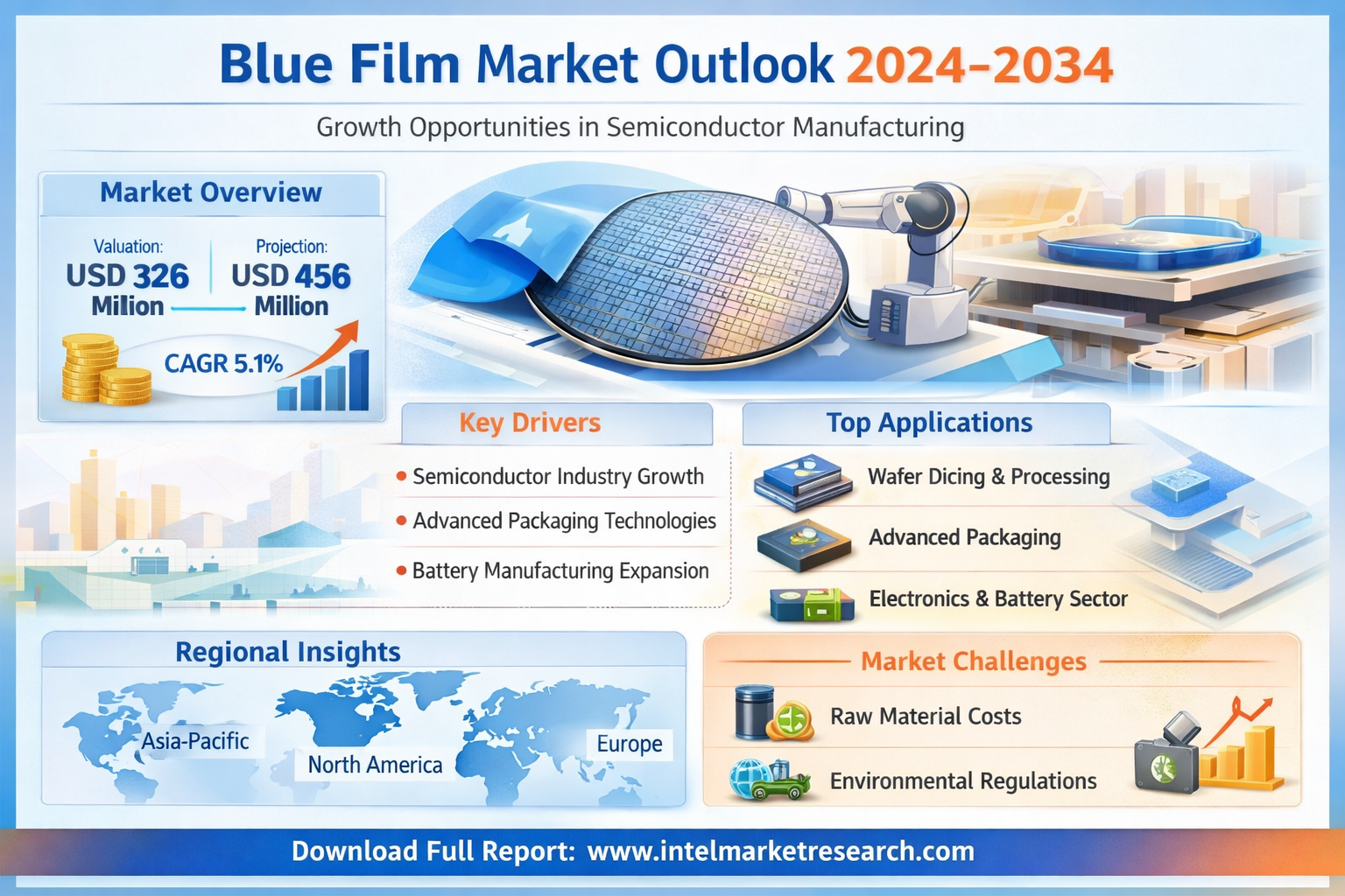According to a new report from Intel Market Research, the global Blue Film market was valued at USD 326 million in 2024 and is projected to reach USD 456 million by 2034, growing at a steady CAGR of 5.1% during the forecast period (2025-2034). This growth is driven by expanding semiconductor manufacturing activities and increasing demand for high-performance adhesive materials in wafer processing.