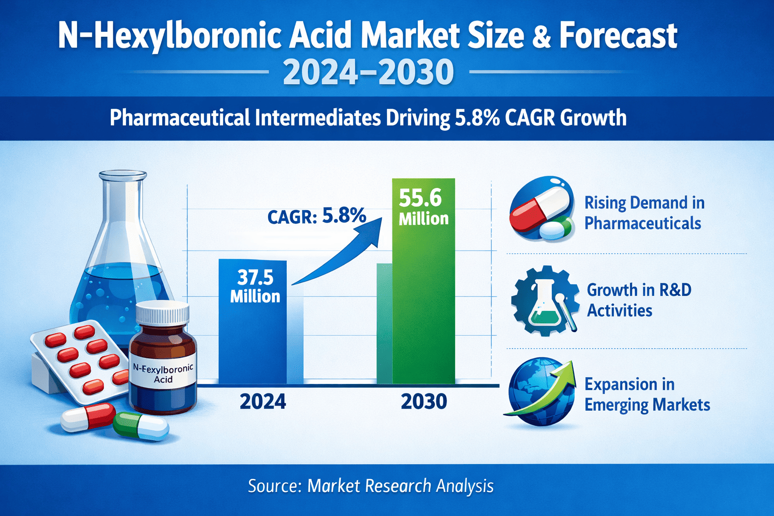 N-Hexylboronic Acid Market Size & Forecast 2024–2030 | Pharmaceutical Intermediates Driving 5.8% CAGR Growth