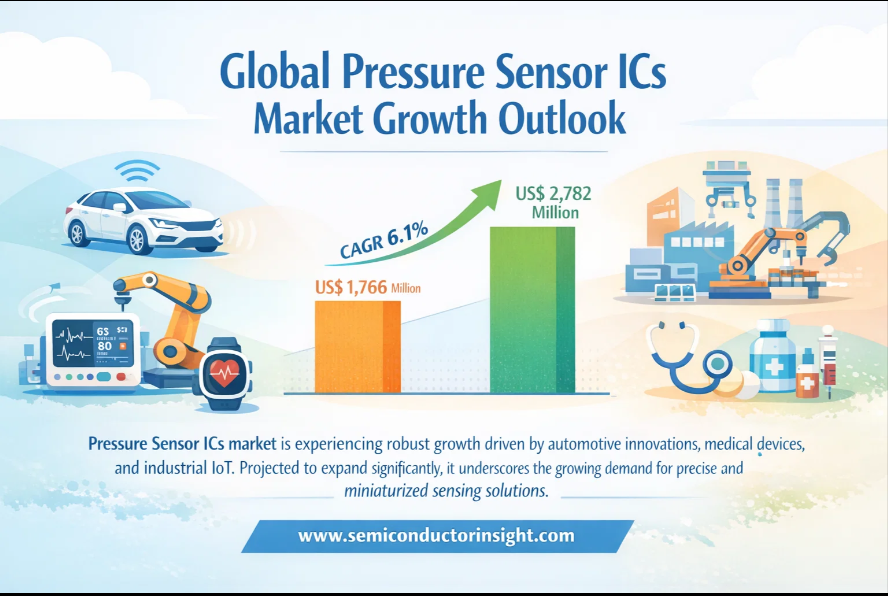 Global Pressure Sensor ICs Market, valued at a robust US$ 1766 million in 2024, is on a trajectory of significant expansion, projected to reach US$ 2782 million by 2032. This growth, representing a compound annual growth rate (CAGR) of 6.1%, is detailed in a comprehensive new report published by Semiconductor Insight. The study highlights the critical role of these sophisticated integrated circuits in enabling precise pressure measurement and control across a vast array of modern technologies, from automotive safety systems to medical diagnostic equipment.