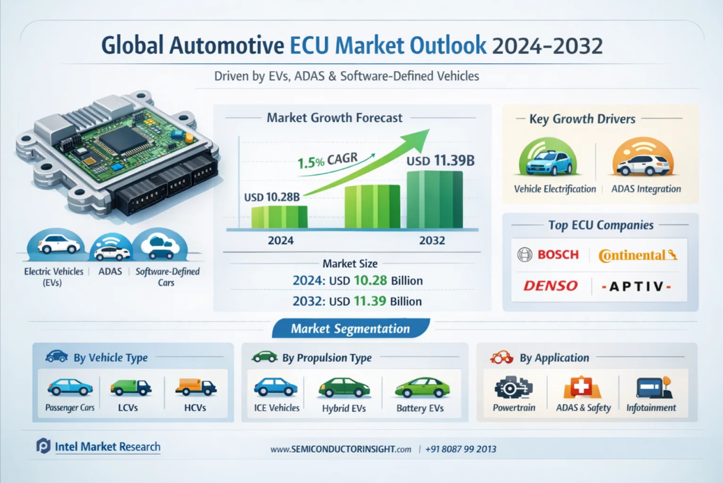 #AutomotiveECU #ECUMarket #VehicleElectronics #ADAS #ElectricVehicles #SoftwareDefinedVehicles #AutomotiveTechnology #ConnectedCars #VehicleAutomation #SmartMobility #AutomotiveInnovation #EmbeddedSystems #AutomotiveIndustry #TechInnovation #MarketGrowth #GlobalMarket #SemiconductorIndustry #IntelMarketResearch