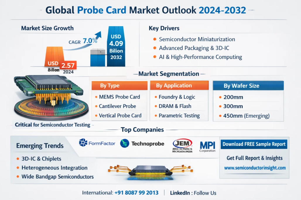 #ProbeCardMarket #SemiconductorIndustry #WaferTesting #AIChips #MEMS #ChipManufacturing #TechGrowth #MarketResearch #ElectronicsIndustry #SemiconductorTesting #AdvancedPackaging #3DIC #Innovation #GlobalMarket #IndustryTrends