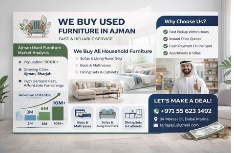 Looking to sell used furniture in Ajman? We are trusted used furniture buyers Ajman, offering instant cash for sofas, beds, dining sets, office furniture, and home appliances. Our professional team provides free valuation, prompt pickup, and fair prices. Clear your space easily and get paid on the spot with our reliable service.